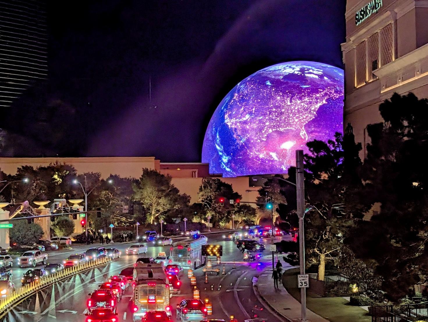 レノボのキーノート開催中の球体イベント会場Sphere