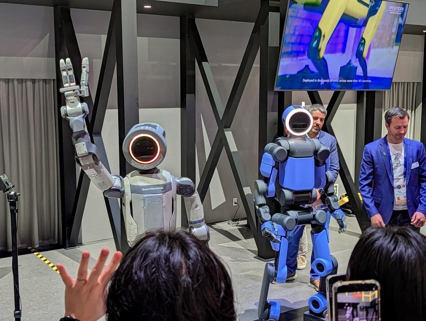 Atlasは来年、初期カスタマーへの提供、及び2028年には自社の工場への導入を予定している。Hyundaiブースには、EVも角の方に置かれていたものの、EVの紹介のためというよりは、車両を移動させる駐車ロボットのデモンストレーションのためというのがメインで、ほぼロボット一色の展示となっていた。
