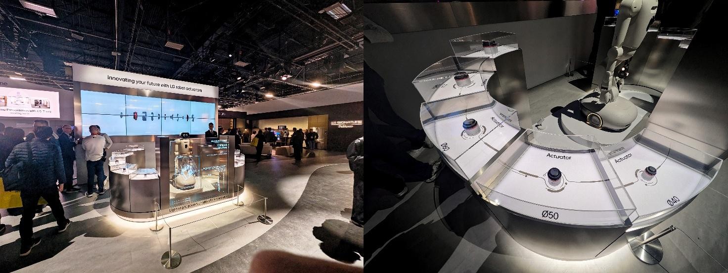 ただ、ブース中央に置かれていたそっけない展示が筆者の目を引いた。置かれていたのはロボットと、サイズ別に並べられていた多数のアクチュエーターだ。ロボットがパフォーマンスをしている訳でもなく、展示も地味なものだったので、LGのブースに足を運んでも、気にも留めなかった人も多いだろう。
