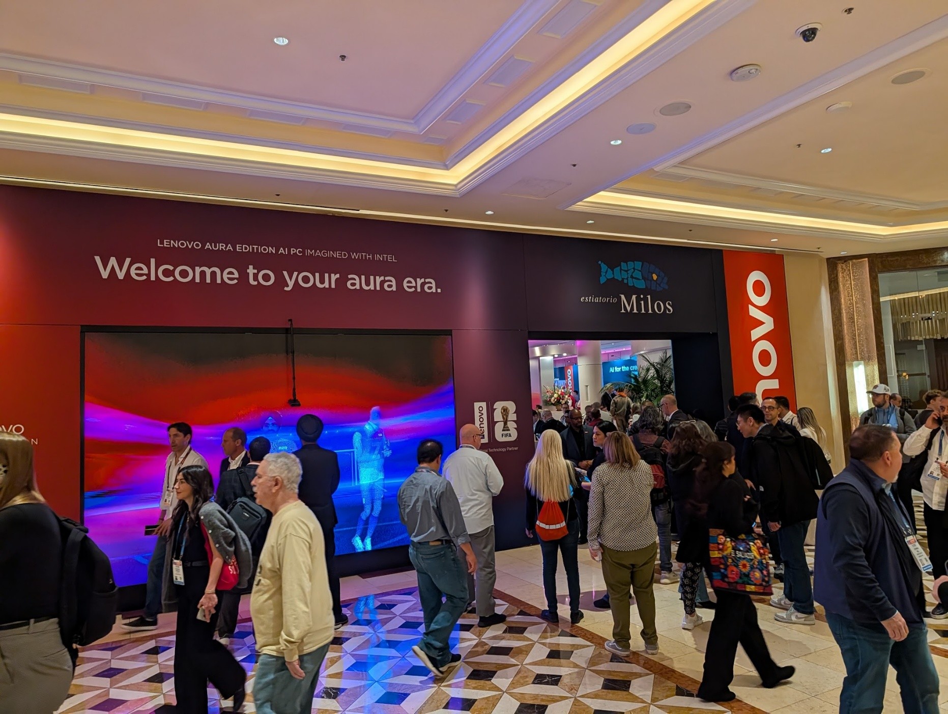 今年はサムスンがホテルでのクローズドな展示となったが、毎年CES Innovation Awardsを受賞している仏ロレアル社も、以前は、CES Unveiledといったメディア向けの前夜祭に展示をしていたものの、今ではホテルの会議室での招待客のみの展示となっている。レノボもかなり前から、会場に隣接したホテルのレストランを貸し切り、招待された人だけが入れる展示となっており(ただ今年は、例年とは異なりSphereという球体状のイベント施設で昨年のデルタ航空に続く華やかなキーノートを行った)、メディアであってもアポをとっていないと入れない。