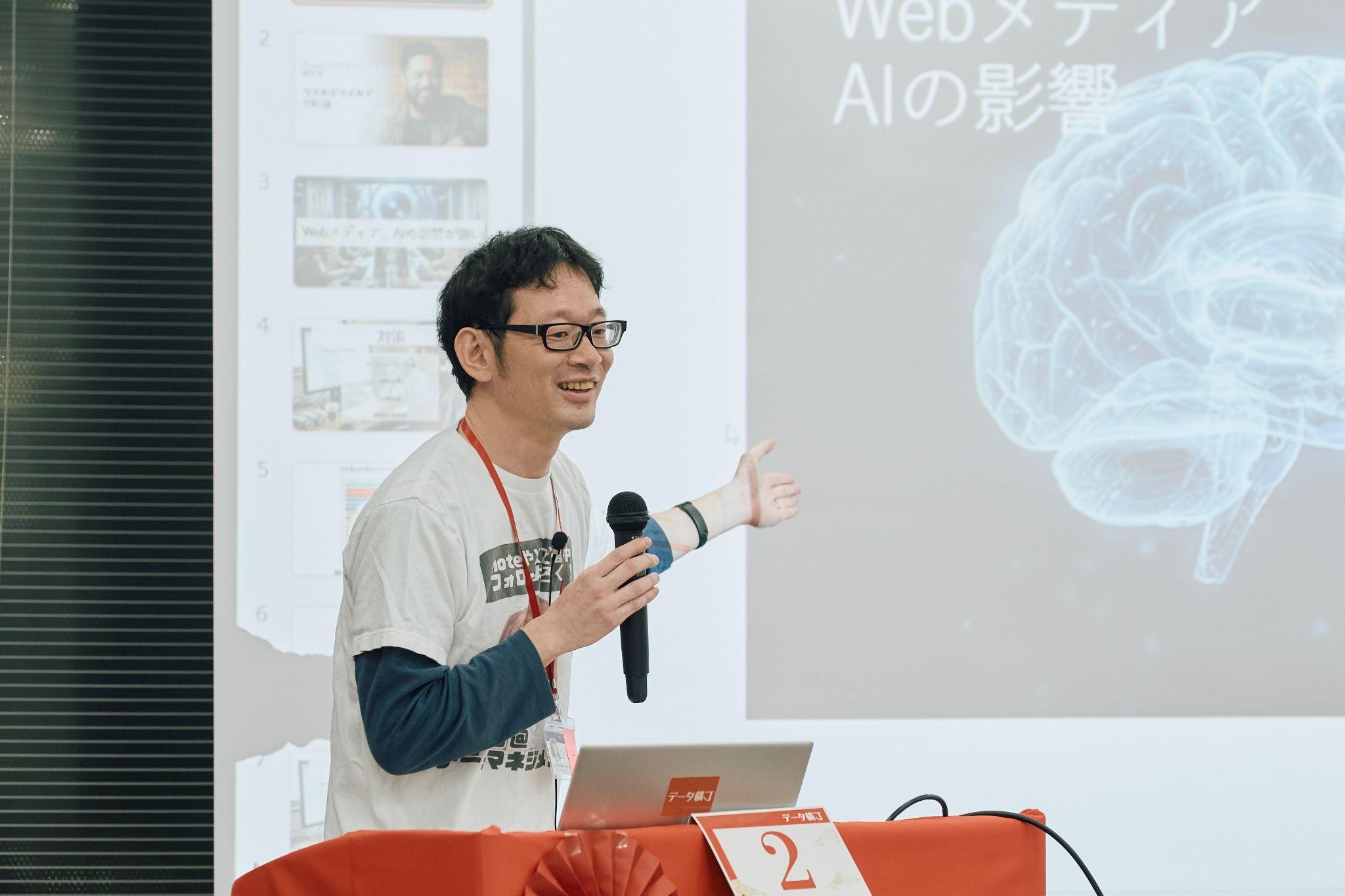データ専門家に新鮮な話題を与えてくれた発表者として企画運営メンバーが選出したのは、No.19筆者の行なった「AI時代に生き残ろうとするライターの1年を振り返る」でした。