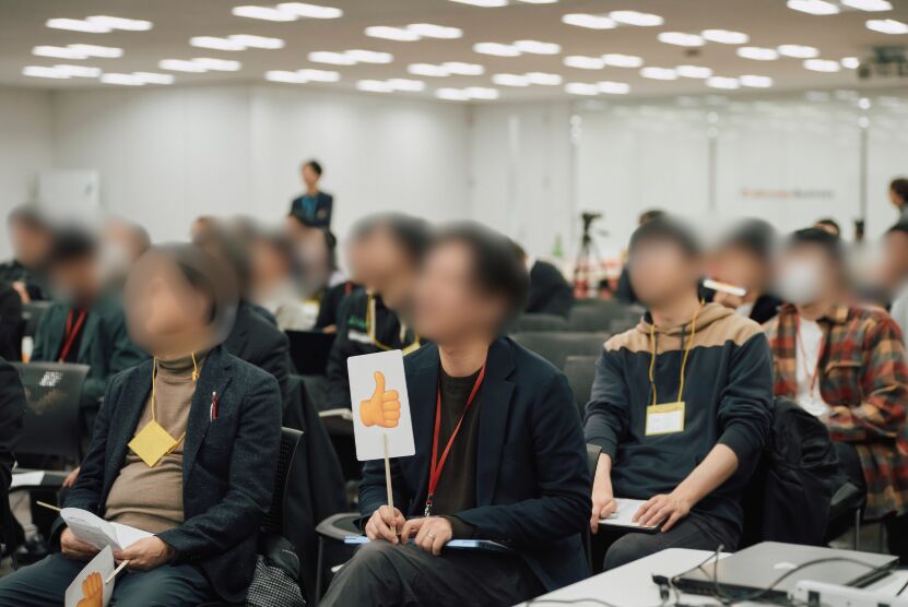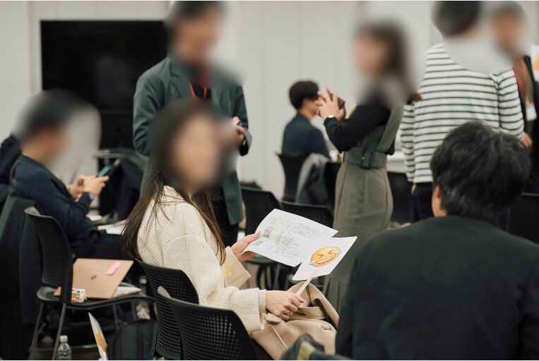 「いいね」マークが一斉に振られると、その場の緊張感も少しずつゆるんでいきます。