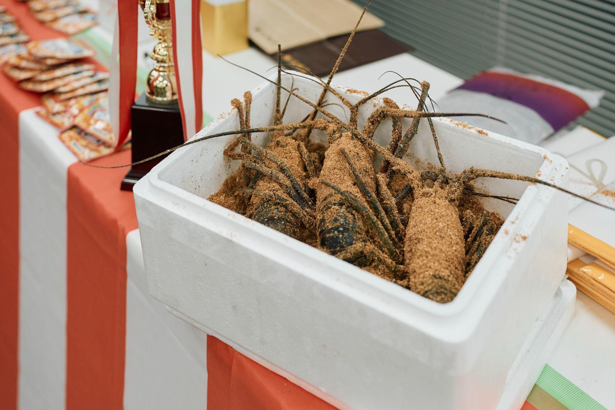最優秀賞はトロフィーと伊勢海老3kg!おがくずの中で生きています