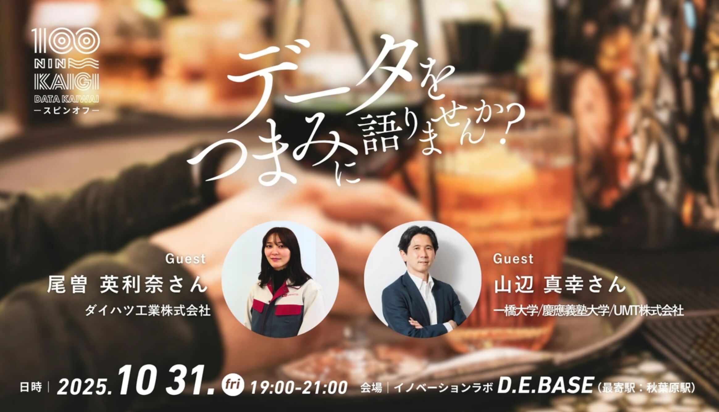 2025年にスタートした「データ界隈100人カイギ」は、100人の“データに関わる人”が登壇し終えたら終了、というユニークなルールのもと、多様な視点から「データの使い方」や「現場のリアル」を共有する場として注目を集めてきました。