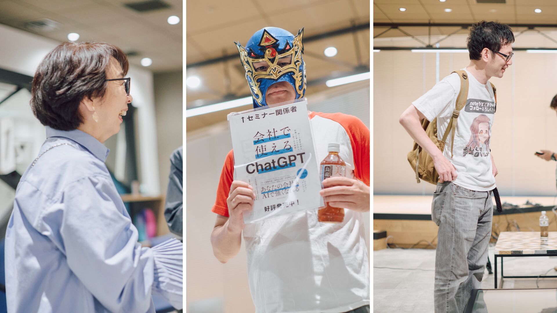 (写真左より)データ横丁 臼井琴美さん/AIコンサルタント マスクド・アナライズさん/データマネジメント よしむらさん