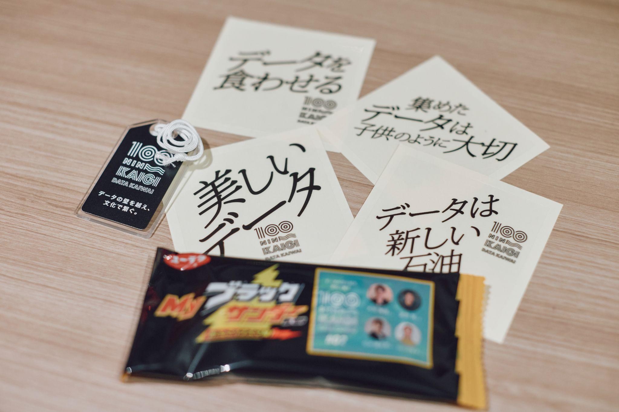 今回のセレンディピティ・トリガーは、さまざまな名言(迷言?)ステッカー、そして実務になると神頼みしたくなることもしばしば…ということで、お守りを皆さんに配布しました。また、本イベントが記載されたブラックサンダーも好評でした。