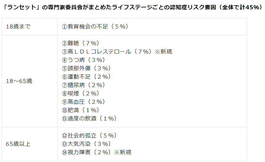 そして、「これら14項目を生涯を通じてコントロールできれば、 認知症の最大約45%は予防または発症を遅らせることが可能である」と推計されています。