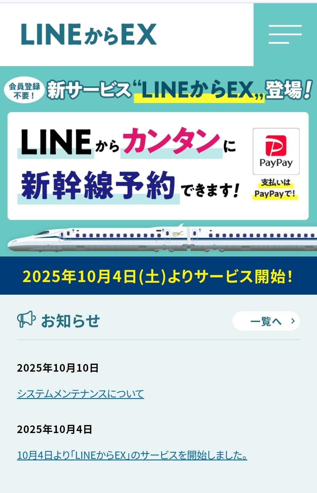 10月4日、東海道・山陽・九州新幹線において、LINE上で新幹線で予約できる「LINEからEX」をはじめた。これは会員登録不要で、LINEから新幹線が予約できるサービスだ。私も使ってみた。