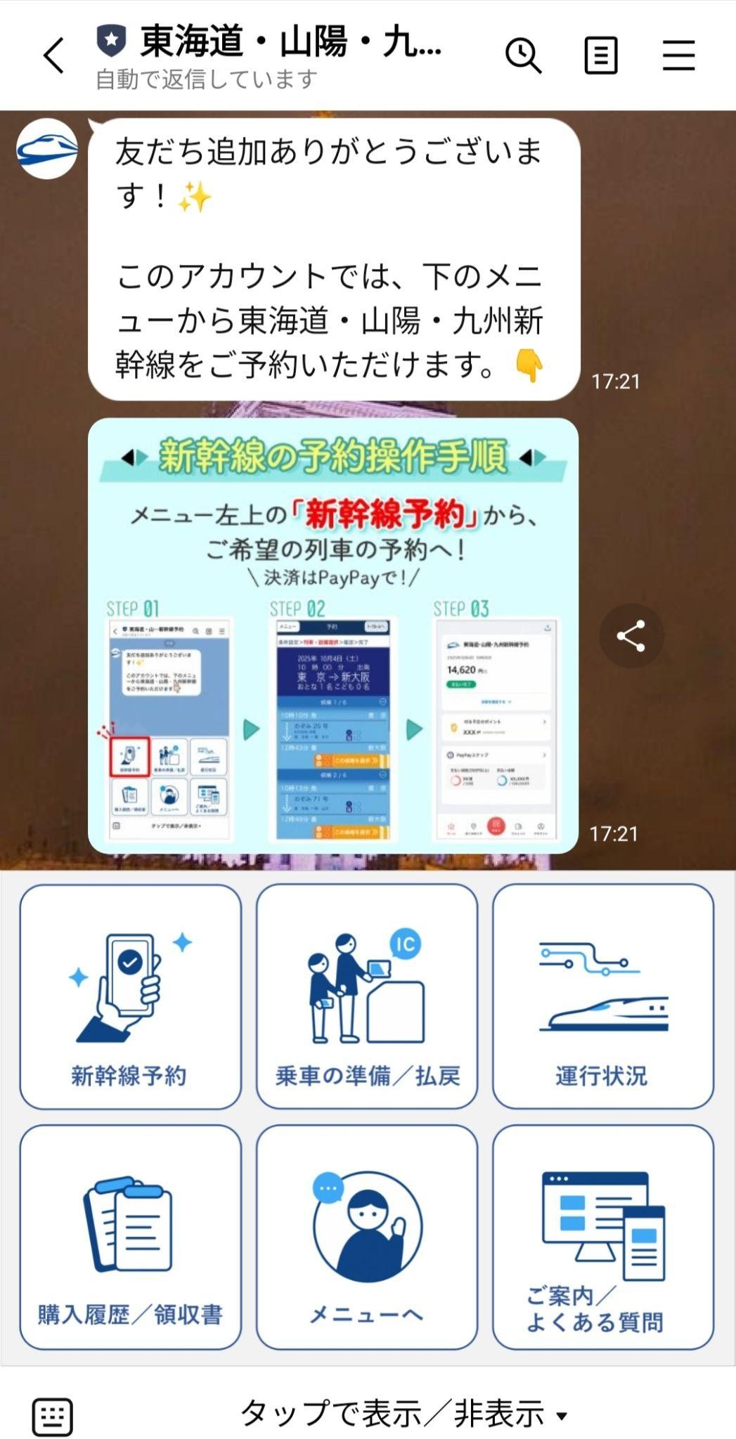 10月からLINEを通じて新幹線の予約・購入ができるようになった)