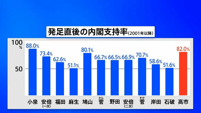 引用元:TBS NEWS DIG「“歴代2位”支持率82%の高市内閣に死角は?若者世代・無党派層の自民“回帰”の兆しも・・・「有権者の期待」に応えられるか【JNN世論調査解説】」
